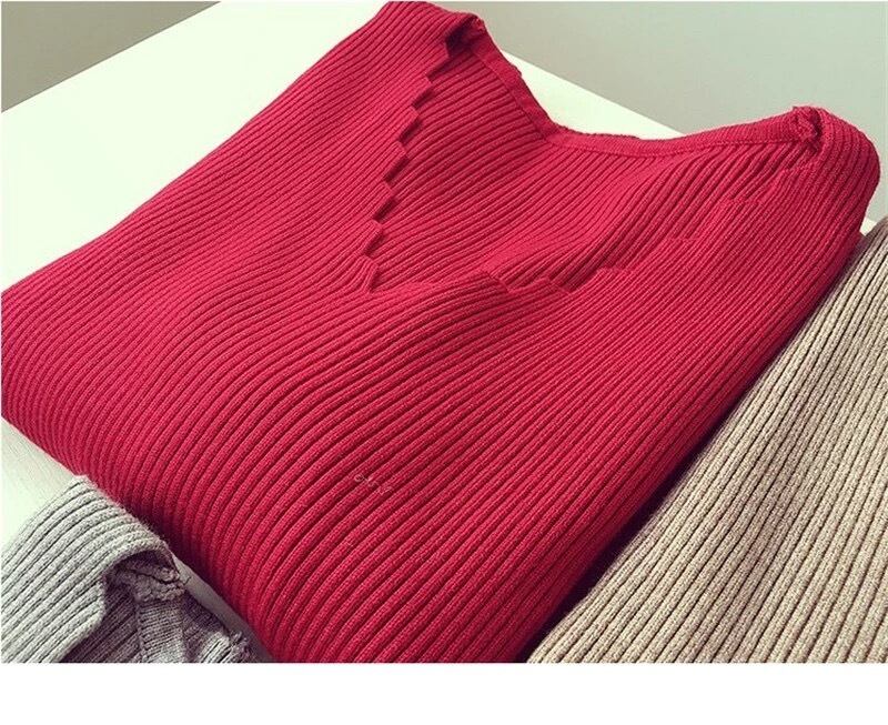 【予約販売】おしゃれVネック長袖ニット(Red)